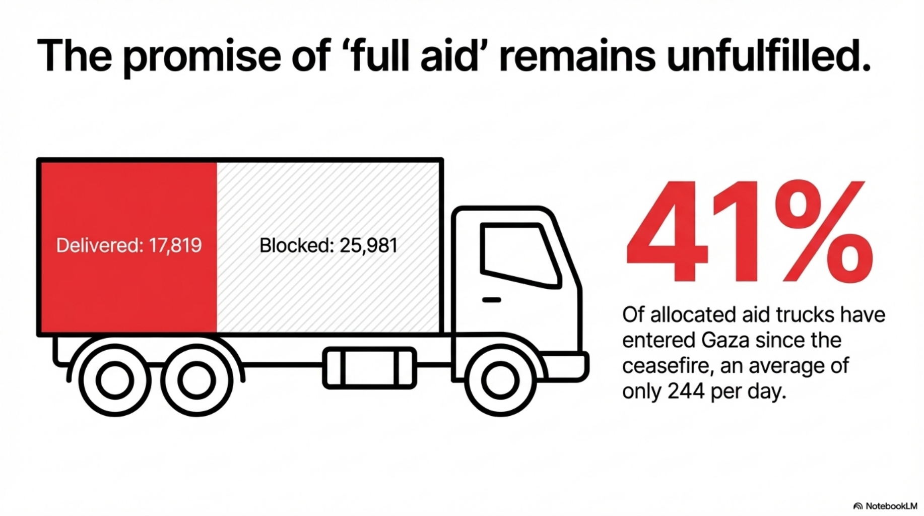 The ceasefire was supposed to usher in "full aid" to Gaza. The reality, however, is a cruel deception. Only 41 percent of the allocated trucks have actually entered the Strip. Out of the 43,800 trucks promised, a mere 17,819 were allowed through between October 10 and December 22.